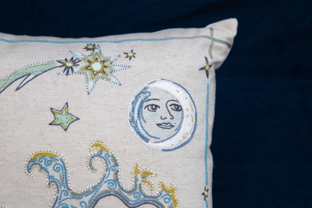 Embroider a bespoke cushion with the Moon Embroidery Kit